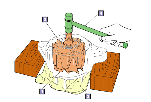 Remove the rotor from the drive end frame bearing by tapping the rotor shaft with a plastic hammer.