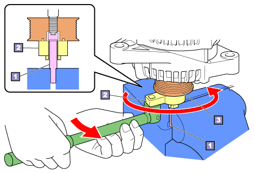 Using an impact wrench will damage the pulley, therefore always use the SST.