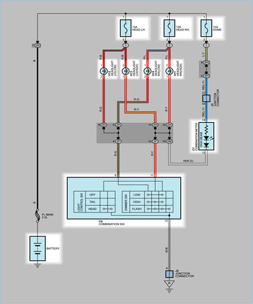 In all Electrical Wiring Diagrams the parts are illustrated with a sky blue colour..