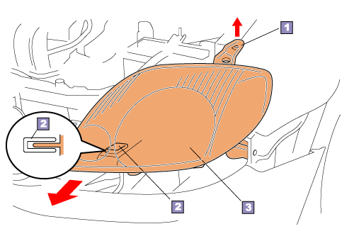 Then, remove the inner bracket while pulling the headlight toward the front of the vehicle, and remove the headlight.