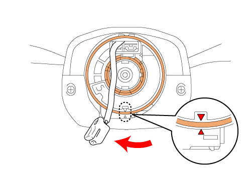 Turn the spiral cable back clockwise 2.5 turns from the position where resisstance was felt and align the centre mark as shown in the illustration.