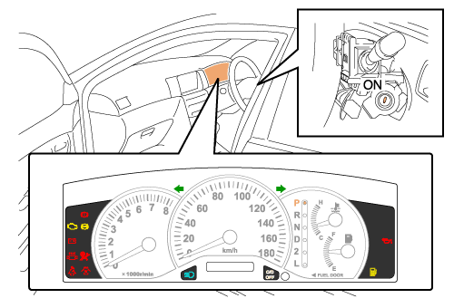 Ensure all lights on the combination meter illuminate when the ignition switch is turned to the ON position.