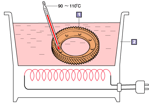 Use a heater to warm the ring gear to 90 - 110°C (194 - 230°F)