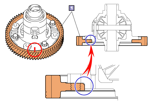 Aligning both matchmarks, quickly install the differential ring gear and bolts on the differential case.