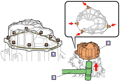 the transmission case cover bolts, loosen and remove the bolts in a diagonal sequence.
