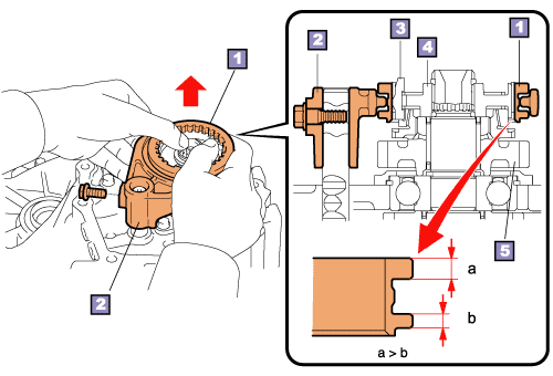 Remove the bolt, and then remove the shift fork and hub sleeve as one unit.