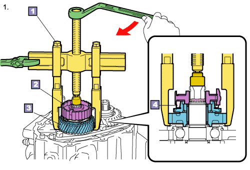 Use SST to remove the clutch hub, synchronizer ring and 5th gear.