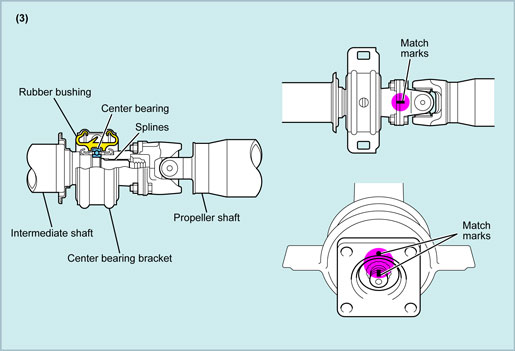 The centre bearing supports the two parts of the propeller shaft in the middle, and is installed via a flange to the splines located at the end of the intermediate shaft.