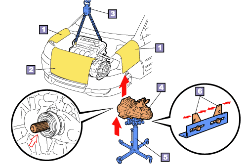 Slowly jack up the transaxle making sure that