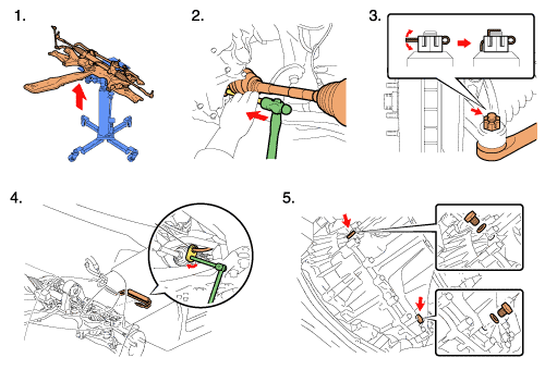 After lifting up the vehicle, install the following components from under the vehicle:
