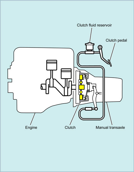 The clutch is located between the engine and the manual transaxle (manual transmission) and connects and disconnects the engine power when the clutch pedal is operated.