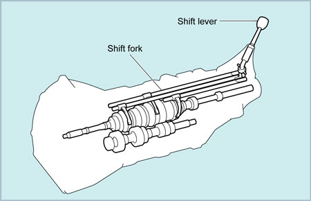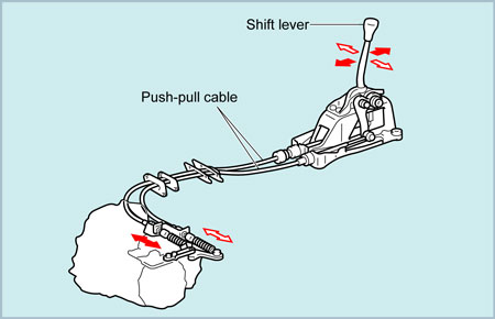 | This type installs the shift lever directly on the transmission. This type is used on FR vehicles because shift operations are quick and has good handling. |