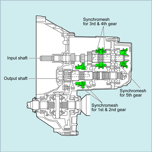 The synchromesh mechanism is used to prevent "gear noise" and to make gear shifting smoother.