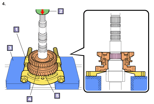 and press the output shaft with hydraulic press to remove the clutch hub assembly