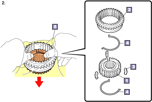 On a C-type transaxle, the reverse gear and hub sleeve are combined into one unit.