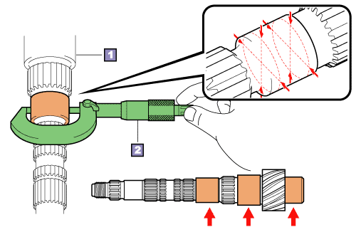 Use a micrometer to measure the outer diameter of each journal over several circular locations.