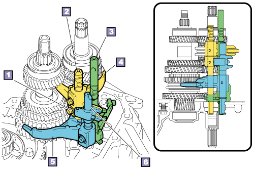 Gear shift fork shaft No.1 (1st and 2nd gears) |