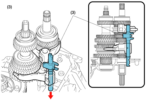Install the shift fork and shift fork shaft in the following sequence: