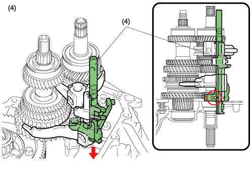 Apply some grease to the balls so that the balls do not drop and then install them in the reverse shift fork.