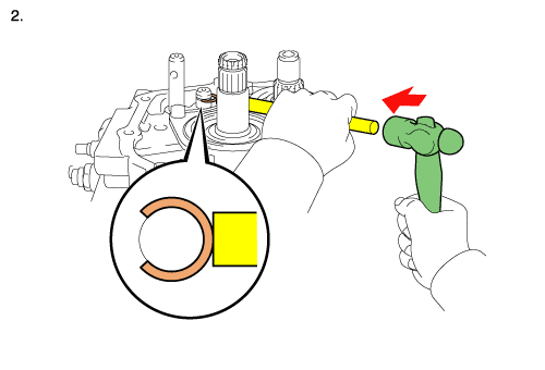 Use a brass bar and hammer to install the shift fork shaft snap ring.