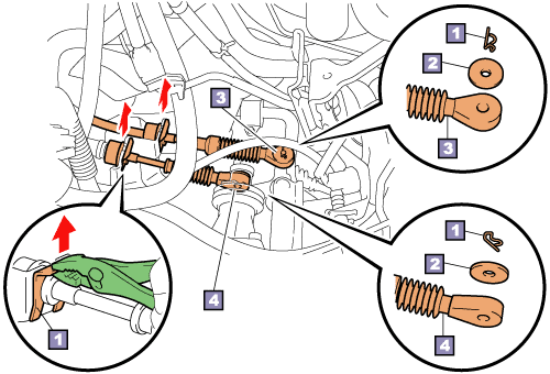 Remove the clips and washers and then disconnect