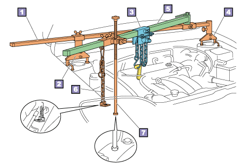 Install the engine support fixture on the suspension tower to support the engine