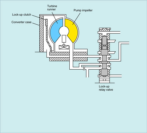 When the lock-up clutch is actuated, it rotates together with the pump impeller and turbine runner. Engaging and disengaging of the lock-up clutch is determined by changes in the direction of the hydraulic fluid flow in the torque converter when the vehicle reaches a certain speed.