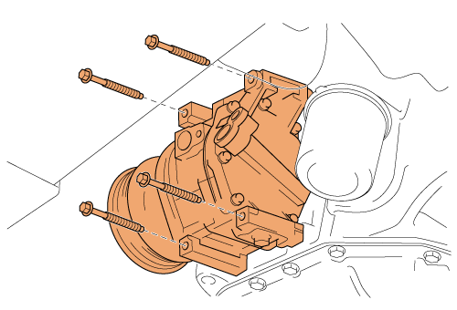 | Exercise caution when removing the A/C compressor and guard against damage to the compessor or other components. |