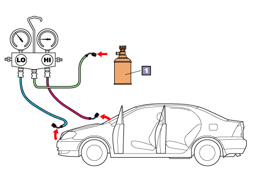 Remove the charging hoses from the service valves on the vehicle and the valve on the bulk refrigerant unit
