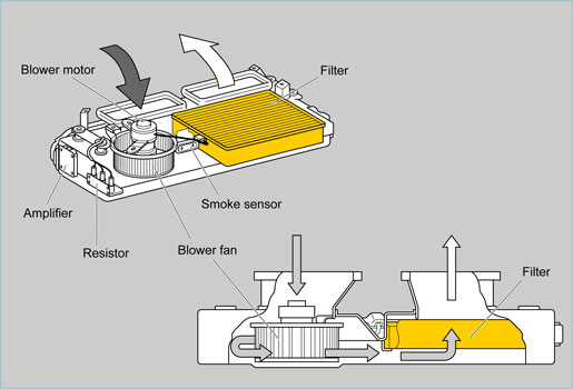 | The air purifier uses a blower motor to draw in the air circulating through the vehicle interior and purify the air while also absorbing odours through a filter containing active carbon. In addition, some models are equipped with a smoke sensor, which detects cigarette smoke in the cabin air and automatically operates the blower motor on the HI speed setting. |