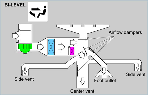 BI-LEVEL: Directs air flow to the upper half of the body and to the feet.