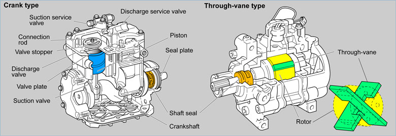 | In the reciprocating compressor, the rotation of the compressor crankshaft is changed to the reciprocating movement of a piston. |