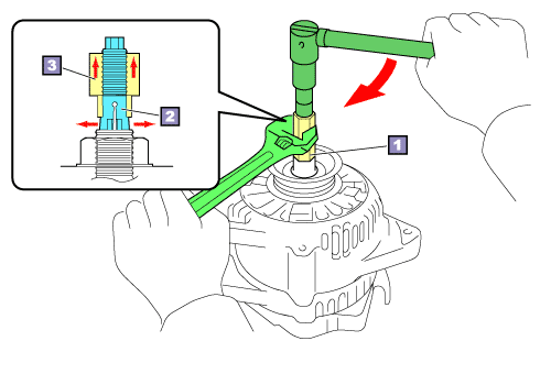 turning SST1-A clockwise relatively loosens the pulley lock nut.
