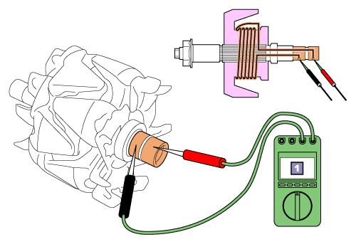 Checking the continuity between slip rings is used to detect open circuit inside the coil. |