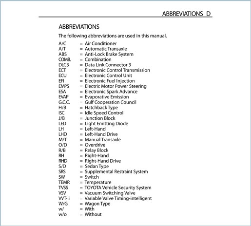 When using a EWD, refer to this section when required to look up any terms thought to be abbreviations.