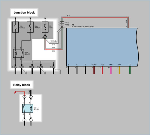 The EWD identifies Junction blocks and Relay blocks as follows.