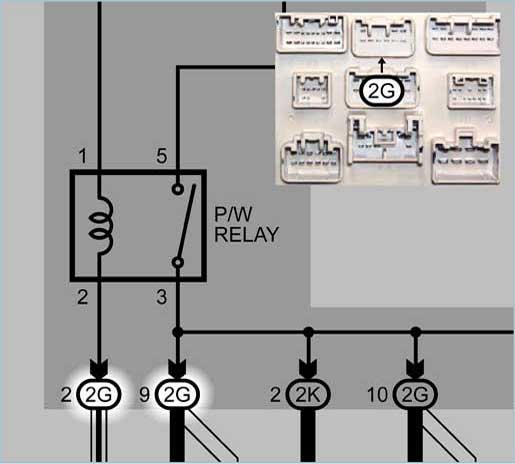 The number in the ellipse (2) shows the junction block number, and the letter (G) shows the connector code.