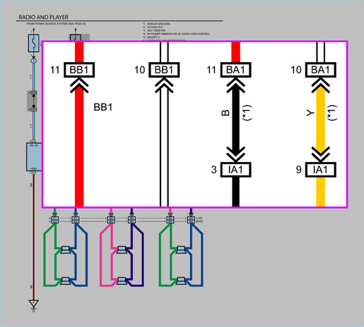 First, let's find the position of "pin 11 of the connector joining the wire harness to the wire harness called BB1" (rectangle symbol).