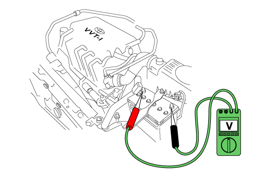 Connect the tester negative side lead to the battery negative terminal and the tester positive side lead to the battery positive terminal.