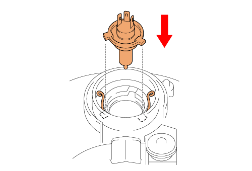 Match the bulb tab with the bulb socket notch and fit the tab into the hole.