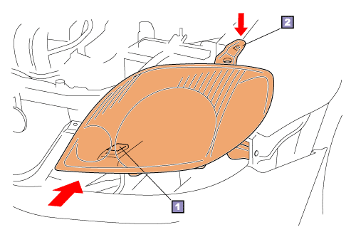 Install the headlight ensuring the headlight inner bracket and pin are engaged.