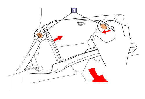 It may be necessary to press in the side of the glovebox to, disengage the stopper on the upper edge of the glove compartment door.