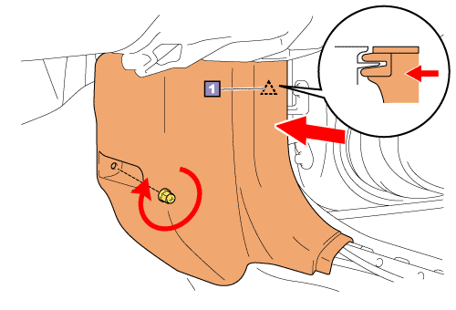 Ensure that all clips attached to the parts to be installed can be reused. Correctly align all clips. locators with there repective location points, then press into position by hand.