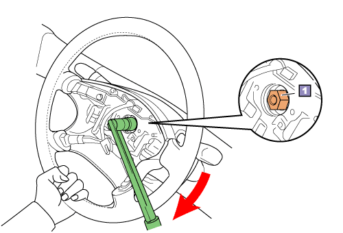 Hold the steering wheel by hand while tensioning the retaining nut.
