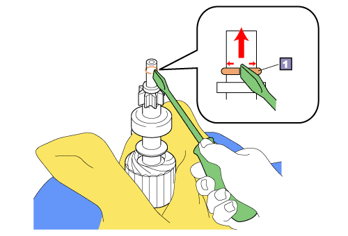 Remove the starter armature assembly from the starter yoke and hold the armature in a vise wedged between aluminium plates or a cloth.
