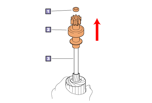 Remove the starter armature assembly from the starter yoke and hold the armature in a vise wedged between aluminium plates or a cloth.