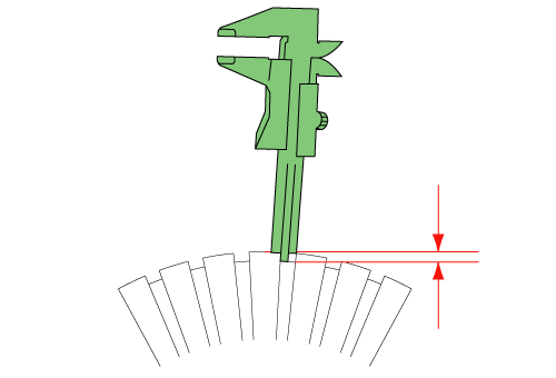 Using a the depth bar of a vernier caliper, measure the depth (undercut) between the segments.