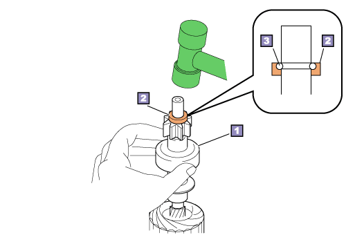 Lift up the starter clutch, keep it up, and hit the shaft with a plastic hammer to place the snap ring into the stop collar.