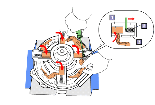 While installing the brush take care that the spring does not jump out.