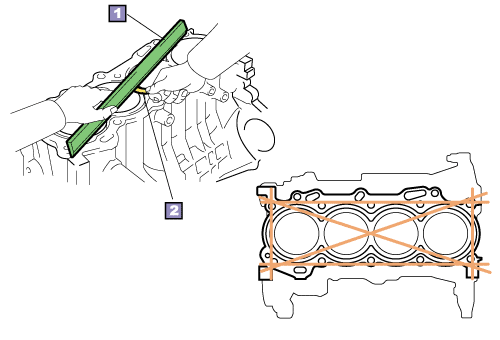 Using a thickness gauge and a precision straight edge, inspect the cylinder block for flatness.